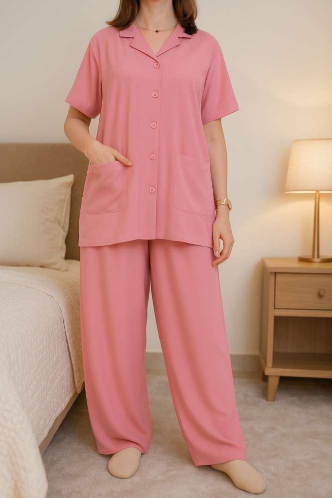 "اختبري فخامة الراحة مع بجامات قطنية واسعة وباردة، صُممت بعناية لتجمع بين الانسيابية والأناقة.